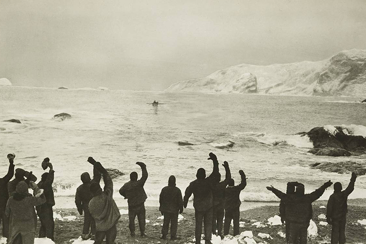 Ernest Shackleton fue un héroe con mayúsculas. Él y veintisiete hombres más se dirigieron hacia el continente antártico en 1914 y, a tan solo 160 kilómetros de la meta, el Endurance, el barco en el que navegaban, quedó atrapado y posteriormente destruido por el hielo. Uno de los integrantes de la expedición era el fotógrafo Frank Hurley, que captó y documentó todos los momentos de la increíble aventura, que se prolongó durante veinte meses, veinte terribles meses de frío extremo, tormentas de nieve, oscuridad. La extraordinaria capacidad de liderazgo de Shackleton combatió momentos de gran pesimismo, de desesperación. Dormía con los integrantes más problemáticos y, si alguien no resistía la situación y se desesperaba y rompía a llorar, lo obligaba a trabajar inmediatamente. Una vez acabadas las provisiones, tuvieron que comer carne de foca y de pingüino, y de pájaros durante los meses menos fríos. Habían pasado casi dieciséis meses cuando seis miembros de la tripulación, incluido Shackleton, cogieron una pequeña barca de poco más de 6 metros y partieron en busca de ayuda. Fue un viaje de riesgo extremo, navegando más de 1300 kilómetros en una zona afectada por potentes perturbaciones. En una fotografía se observan a los veintidós miembros de la expedición despidiéndose de los integrantes de la barca, sin saber si algún día volverían a verlos o serían rescatados.