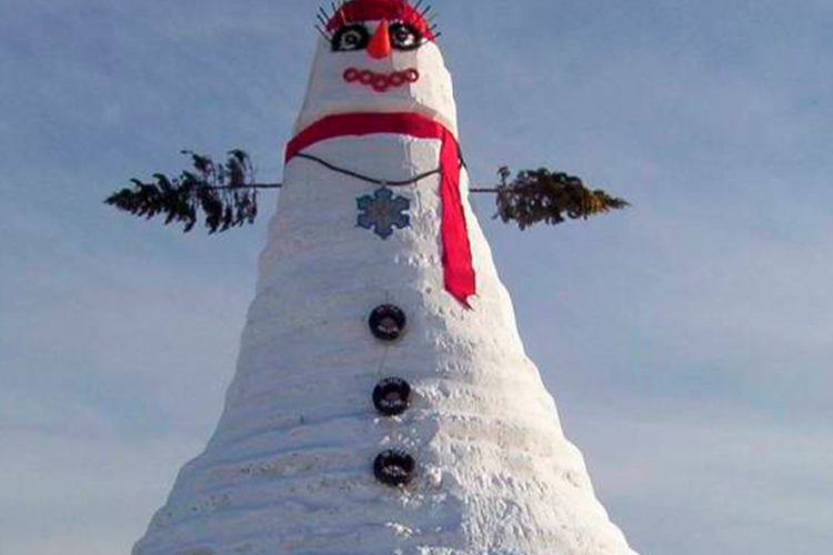 En Keweenaw, en el parque del estado de Michigan, la media de nieve caída en un invierno normal es de 4,75 metros, y el récord es de 9,75 metros en la temporada 1978-1979. Con tanta nieve se pueden hacer muñecos enormes, como el que vemos abajo, construido en 1999 en Bethel (Maine), una zona también de grandes nevadas. Es el más grande del mundo. Tan solo hace falta decir que sus pestañas son esquís; los labios, una hilera de neumáticos rojos; y los brazos, abetos de Navidad reciclados. Se acabó de fundir el 10 de junio.
