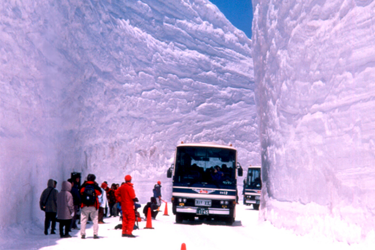 A mediados de diciembre cayeron grandes nevadas en Japón, casi tres metros de nieve en 72 horas en las montañas del centro del país. En la prefectura de Toyama hay una carretera que atraviesa la cordillera y que está cerrada de abril a noviembre. Las nevadas que caen en la zona son las más copiosas y persistentes del Japón, y de las más importantes del planeta: se llegan a acumular hasta 20 metros. Entre abril y mayo, el paisaje es impresionante; y la carretera, gracias a la labor que durante todo el invierno han realizado excavadoras y quitanieves, está delimitada por muros de nieve que pueden alcanzar la altura de un edificio de diez plantas. La imagen da fe de la enorme cantidad de nieve acumulada.