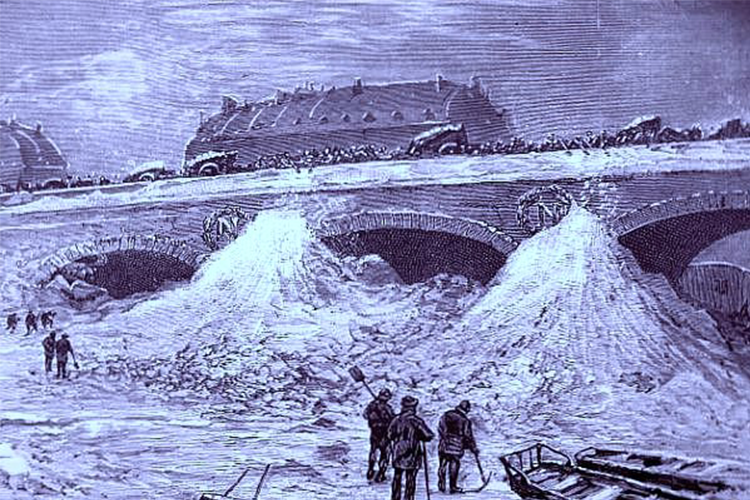 Avanzaba el mes de diciembre de 1879 y París seguía bajo la nieve y el hielo. El Ayuntamiento requisó centenares de carros para transportar nieve de las calles y aceras y lanzarla desde los puentes sobre el Siena, que empezaba a congelarse. Los trineos proliferaron y llegó un momento en el que se contaron 5 trineos por cada 20 carruajes. La nieve helada de las aceras causaba multitud de accidentes. Máquinas de vapor intentaban fundir el hielo, pero finalmente se decidió utilizar toda la sal disponible, que se repartió día y noche por las aceras y calles de la ciudad. El pintor Pierre-Auguste Renoir cualificó la nevada de «lepra de la Naturaleza», pero Claude Monet quedó fascinado y se pasaba cada día horas y horas observando la nieve y el hielo que posteriormente plasmaría en sus cuadros. Un periodista escribió: «Hace un frío que parte las piedras. Vemos un calientapiés, un caballete y un señor enfundado en tres gabanes, las manos enguantadas, el rostro medio congelado: es el señor Monet estudiando el efecto de la nieve». El frío se intensificó y los ríos acabaron congelándose. Centenares de barcos quedaron atrapados. Entre el 9 y el 10 de diciembre se registraron los fríos más rigurosos: el día 9, la máxima era de –10,4 °C, y el día 10 se batió el récord histórico con una mínima de –25,6 °C. Se abrieron «calefactorios» para que los parisinos encontraran algo de calor. El día 13 de diciembre, la temperatura subió un poco… para volver a caer en picado el día 17 con un registro de –21,5 °C. Se puso de moda patinar sobre hielo. El día de Navidad se calcula que 25 000 parisinos patinaron sobre el Siena. Nadie se podía imaginar que en pocos días el río se convertiría en el trágico protagonista de la ciudad.