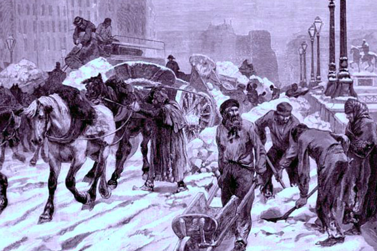 Hasta el 18 de noviembre de 1879, las temperaturas en París fueron suaves. Aquel día la máxima bajó un poco, y se llegó a los 10 °C… ¡Nadie se imaginaba que aquel valor no se volvería a alcanzar hasta el 6 de febrero! Un potente anticiclón se situó hacia el oeste de Irlanda y una profunda borrasca se formó en el Mediterráneo, y entre los dos centros de acción empezó a fluir una masa de aire siberiano hacia Centroeuropa. Los días 26 y 27 de noviembre empezó a nevar intensamente y los termómetros bajaron hasta los –6 °C, y una semana más tarde un temporal de nieve con viento huracanado azotó la ciudad, en la que de media se depositaron 25 cm. Entre los días 8 y 10 de diciembre volvieron a caer 10 cm más de nieve. Después de esta última nevada, una masa de aire aun más fría se abatió sobre el norte de Francia. Pintores como Camille Pissarro, Alfred Sisley o Paul Cézanne plasmaron en sus cuadros los efectos de la nieve y el hielo. En París, el peso de la nieve helada provocó el hundimiento de algunas construcciones, como el mercado de la Rue Château. La circulación por las calles era imposible, así que el Ayuntamiento de la ciudad congregó a miles de parados para retirar la nieve, como vemos en la imagen. Pero la pesadilla tan solo acababa de empezar…